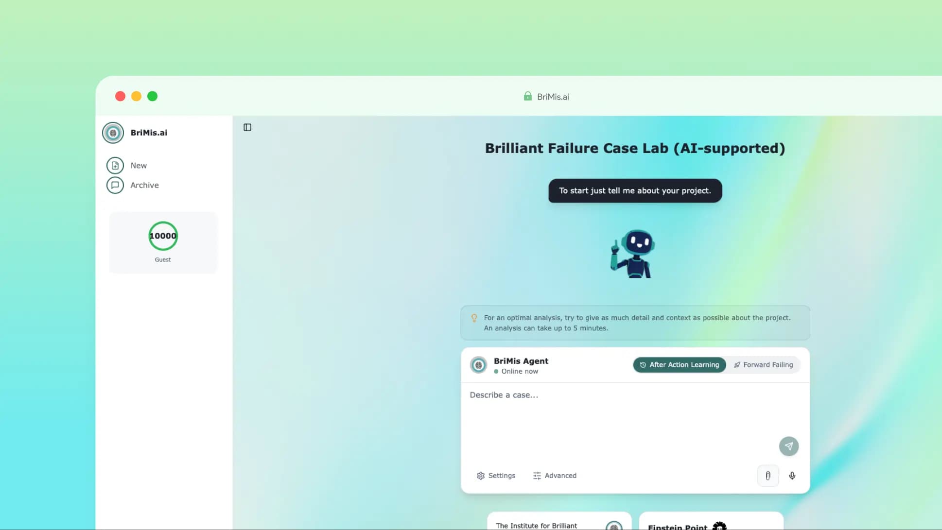 BriMis.ai turns failure into a strategic advantage. The platform enables organizations to record, analyze, and share learning experiences—from failed innovations to abandoned projects—in a structured and accessible way. Using AI, submitted cases are automatically linked to so-called archetypes: recognizable failure patterns that occur across sectors and contexts. In this way, a single failure becomes a lesson not only for the organization involved, but for everyone facing similar challenges—before, during, and after a project.